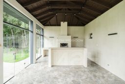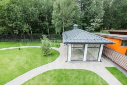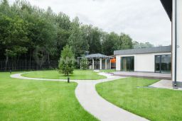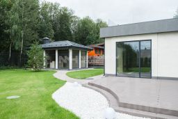 17,26 соток ровный, правильной формы, расположен на тупиковой улице поселка. Выполнены дренаж, освещение, парковка на 6 а/м, автоматические ворота, широкий заезд, ограждение в едином стиле поселка, высажены крупномеры, ровный газон. В прилесной части участка расположена теплая беседка/барбекю с раздвижным остеклением, оборудованая кухней и печь-мангалом.