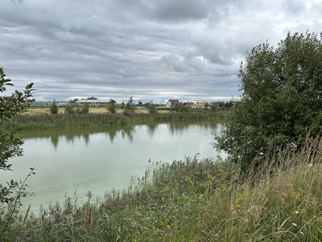 Участок на берегу пруда, без строений, без забора, с трех сторон соседи