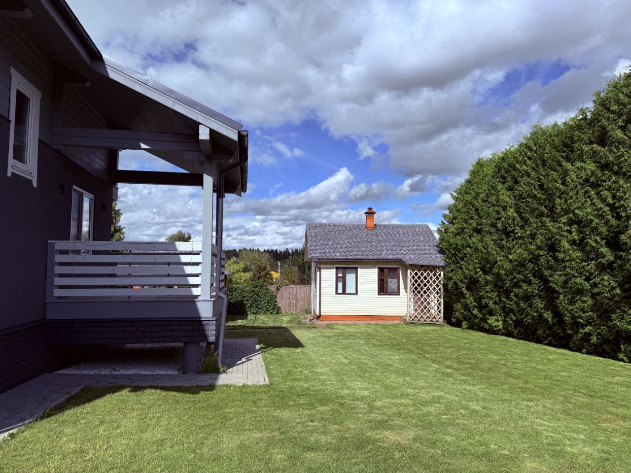 На участке имеются гостевой домик с хозяйственной частью, баня, капитальная беседка с мангалом и казаном, живая изгородь из высоких часто посаженных туй. К дому пристроен красивый навес по индивидуальному проекту для двух автомобилей. Вся мебель и хозяйственный инвентарь (газонокосилки, снегоуборочная машина и многое прочее) включены в стоимость. Дом поставлен на кадастровый учет, документы готовы к сделке.