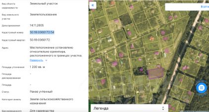 50:19:0060172:54. В собственности более 18 лет, всё это время обрабатывался . По нижней строне участка, в 20 м, течёт небольшая речка . К продаже не планировался, поэтому обрабатывался для себя. Разумный торг уместен.
