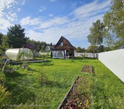 Продам дачный дом 50 кв.м. со всеми коммуникациями на участке 6 соток в СНТ Связист России, в районе д. Петрино, ж/д ст. Власово (до станции от СНТ 2 км по прямой, пешком). Московская область, Талдомский р-н, 90 км от МКАД, 2 ч. на электричке от Москвы до ж/д ст. Власово. От/до станции ходят автобусы к каждой электричке, такси (до остановки 1,5 км). Вокруг есть строительные и продуктовые магазины, в СНТ сезонный магазинчик, пруд, в 15 км находится г. Талдом, до которого ходят электрички и автобусы. До СНТ отличная асфальтированная дорога, на территории асфальтная крошка/грунтовая. Участок 6 соток, сельхозназначения, для садоводства (межевание сделано), ровный, сухой, очень ухоженный, сделан дренаж участка с выводом в дренажный колодец, засеян газон, есть теплица и различные насаждения, цветы, полностью огорожен, организована площадка для авто. Дом 2000-х годов постройки, каркасный (с утеплением), оформлен (как жилой), в хорошем жилом состоянии внутри отделка влагостойким гипсокартоном, окна ПВХ, хорошая входная дверь, фундамент лента (есть небольшой погреб), кровля шифер, пристроена терраса (остекление мягкие окна). Планировка: кухня, санузел/душ, комната на 1-м этаже, и 1 комната на 2-м этаже. При продаже остается кухонная мебель, газ. плита, холодильник, стир. машинка, всё в санузле, частично мебель. Коммуникации: электричество 8 кВт, летний водопровод + колодец (6 колец), насос, бойлер для горячей воды заведено в дом, септик "GUАLОS" 5м (на 4 человек) заведен дом, беспроводной интернет (усилитель сигнала, роутер). Взносы 12000 руб. в год. Рядом с СНТ лес и пруд, грибные места, есть водоемы в округе, тихое спокойное место с хорошей экологией. Хороший круглогодичный доступ, зимой дороги чистят, въезд через автоматический шлагбаум. 1 взрослый собственник, менее 5-ти лет (основание ДКП). Рассмотрим продажу по ипотеке. МАТ КАПИТАЛ НЕ РАССМАТРИВАЕМ.