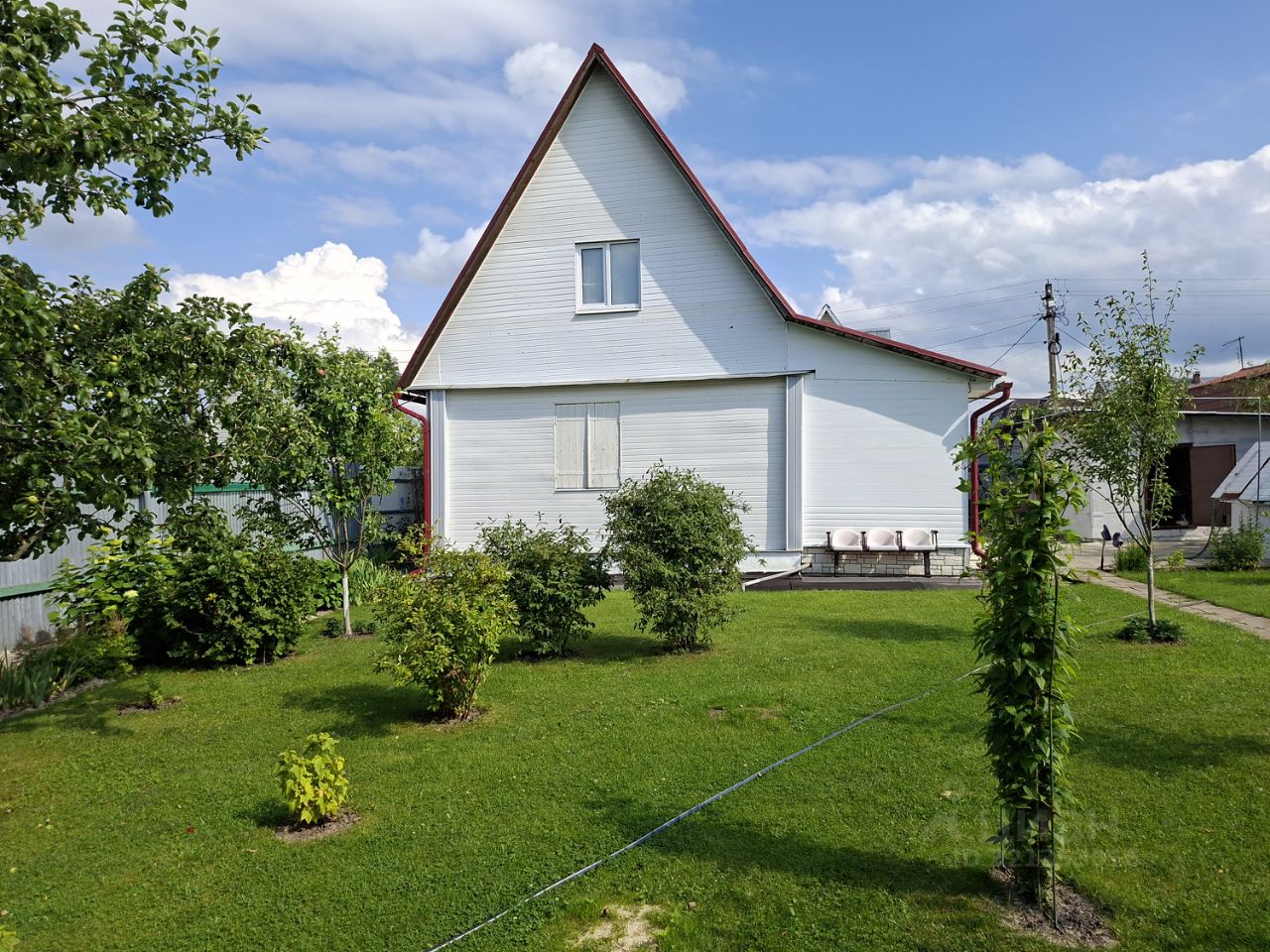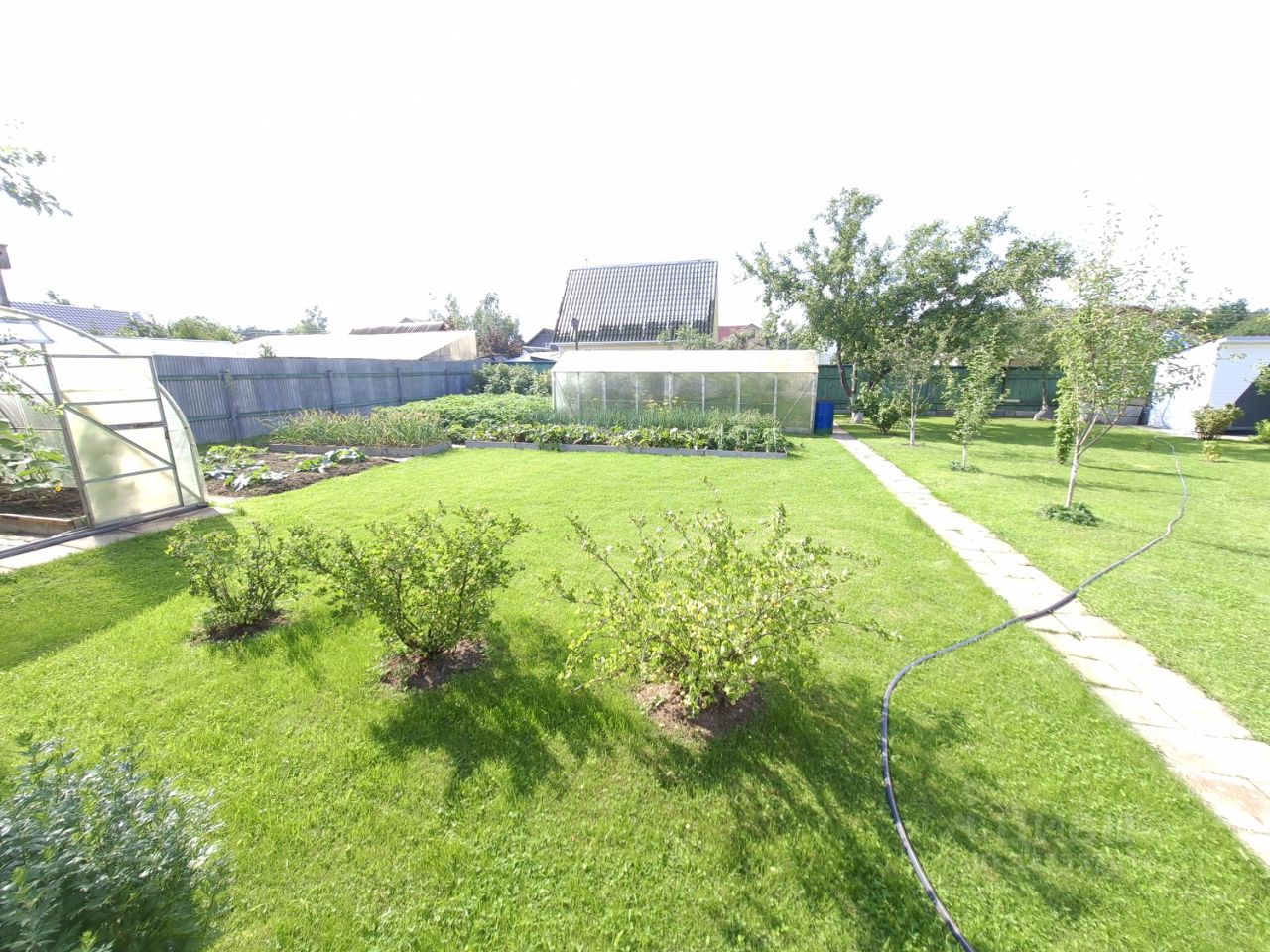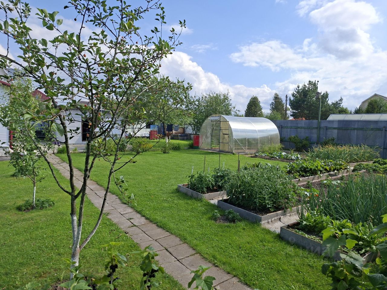 Участок украшают плодовые и декоративные деревья и кустарники, которые будут радовать вас урожаем и красотой в любое время года. Оборудованные грядки позволят вам заниматься садоводством, а дорожки, выложенные плиткой, создают аккуратный и ухоженный вид.