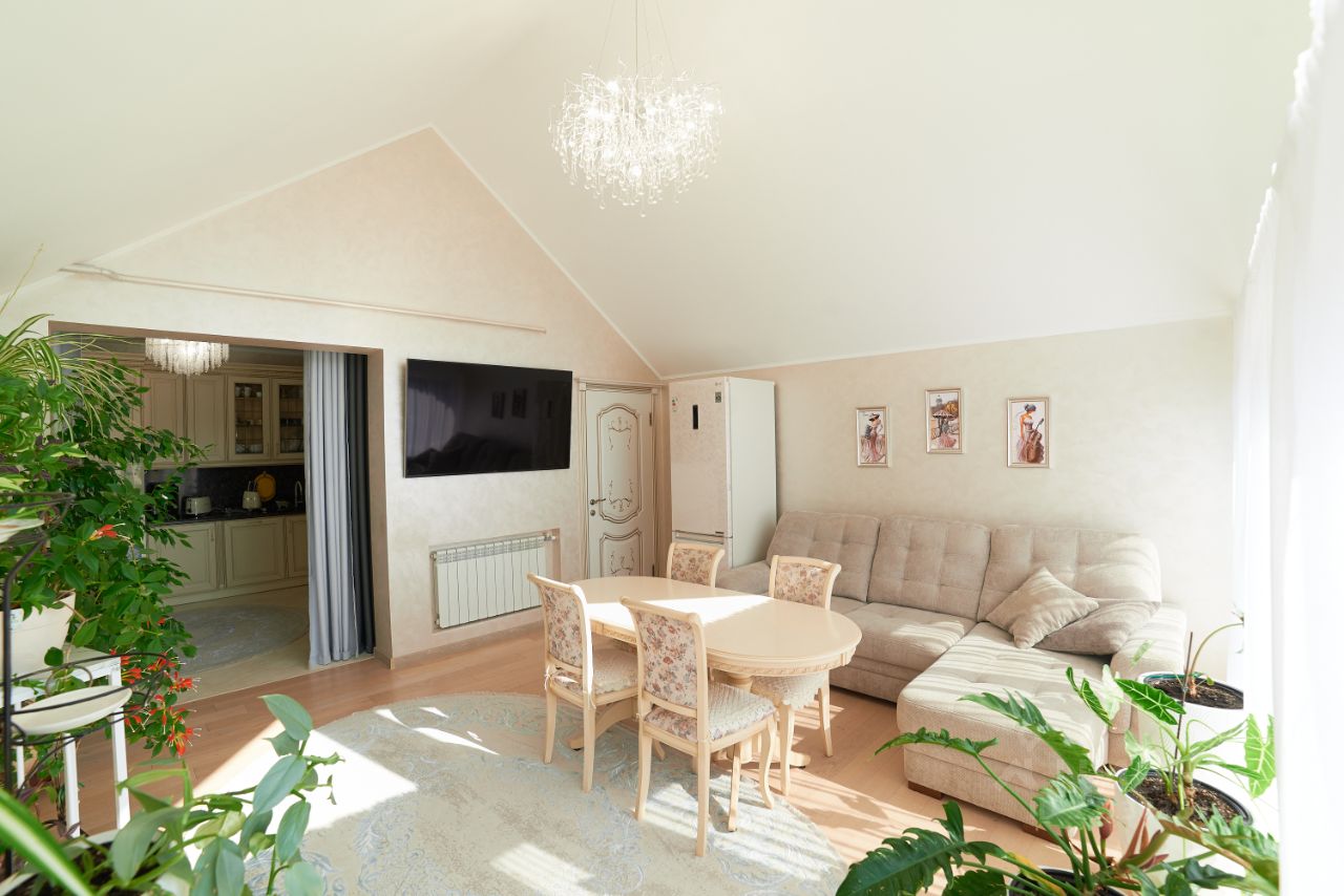 О доме: стены натуральное бревно + клинкерные панели, крыша - металлочерепица, на первом этаже большая кухня гостиная, полы с подогревом, ванная комната. на втором этаже две спальни, гардеробная, ванная комната.
