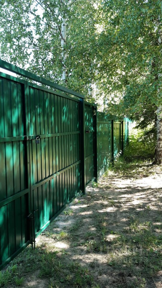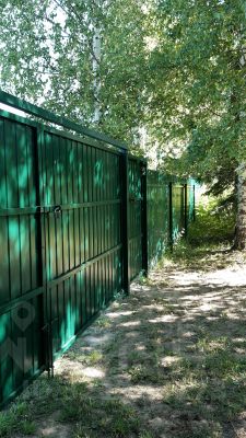 Участок огорожен железным забором с внешней стороны и сеткой рабицей с соседними участками.