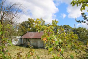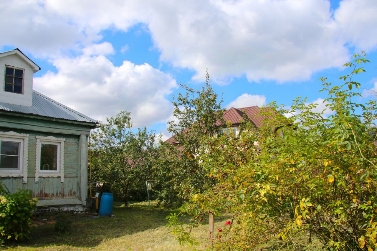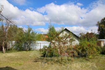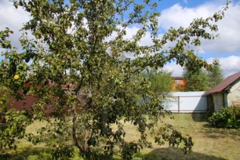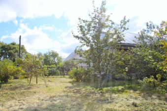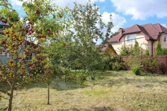 Дом расположен на участке в 10,7 сотки, окружен с двух сторон землей, где можно поставить еще один дом. Во дворе дома, высажен сад: растут яблони, слива, груша, калина, рябина. Окна выходят в сад, что располагает релаксу и созерцанию природы.