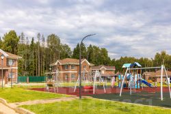 Поселок окружен живописными ландшафтами: с одной стороны лес, с фасада поле, за которым раскинулись вековые деревья. Собственная речка с обустроенными променадами — идеальное место для романтических прогулок или семейного отдыха.