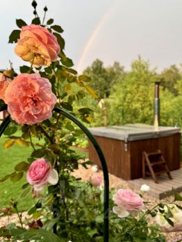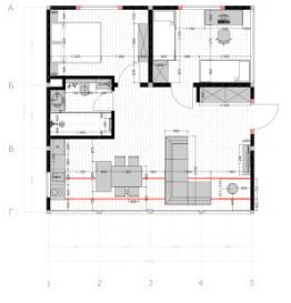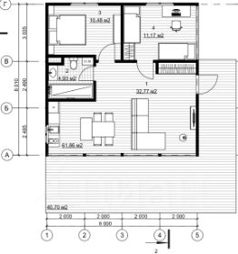 Внутреннее пространство организовано с учетом комфортного проживания: просторная кухня-гостиная, отдельные спальни, санузел с душевой зоной. Деревянные окна и входная дверь с энергосберегающими стеклопакетами, как и в основном остеклении. Мансардное окно в санузле. В гостиной предусмотрено место для установки печи-камина.
