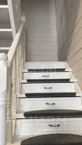 - Открытая светлая лестница с удобными выдвижными ящиками