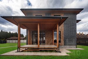 Все коммуникации центральные, заведены в дом и подключены. Фасад дома сделан из глиняной клинкерной плитки. Крыша мягкая черепица. Установлен забор из штакетника, автоматические ворота, калитка, площадка для двух машин. Дом возведен из кирпича (толщина стен 50см), на свайно-ростверком фундаменте.
