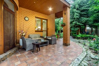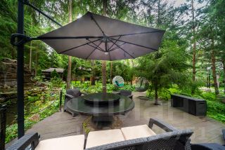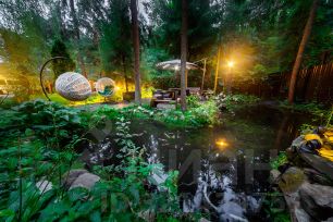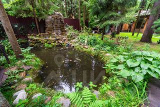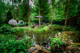 • Зона отдыха: Приватная территория у живого пруда с водопадом и подсветкой (шезлонги, большой стол).