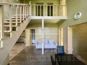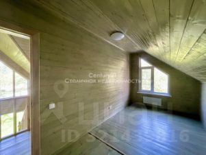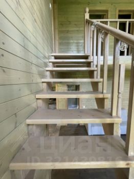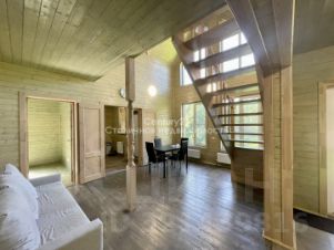 На 1-м этаже находится кухня 16.5 кв.м., гостиная 19 кв.м, комната 10 кв.м., санузел 7.4 кв.м. и прихожая. Кухня укомплектована кухонной мебелью и встроенной варочной поверхностью. Из кухни имеется выход на большую веранду 30 кв.м., которая может с комфортом разместить хозяев дома и гостей. Просторная гостиная имеет "второй свет", что в сочетании с большой площадью остекления дает много света и зрительно увеличивает пространство.