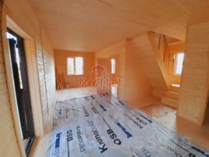 Планировка: просторная кухня гостиная 25 кв. м. с отдельным выходом через французское окно на террасу, комната 8 кв.м., совмещённый сан узел 3 кв.м. и на втором этаже одно помещение во всю площадь дома 45 кв.м.