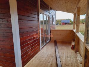 Дом построен на винтовых сваях бригадой профессиональных строителей из сухого северного леса, пол и потолок утеплены минеральной ватой на 20 см., стены на 15 см., перегородки на 5 см. , снаружи обшит имитацией бруса и покрашен, внутри вагонка и половая доска. Потолок террасы обшит вагонной из лиственницы!