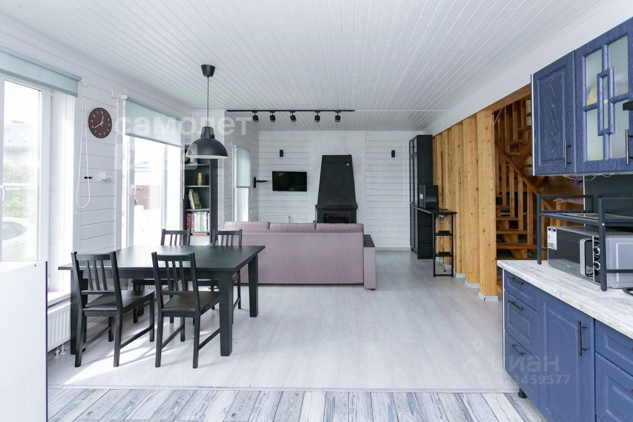 Кухня-гостиная 30 кв.м. с действующим дровяным камином, спальня, котельная (с воодоочисткой), тех.помещение (постирочная, кладовая), прихожая, санузел с душевой кабиной, постирочной и сушильной зоной. Из гостиной есть выход на террасу 21 кв.м.