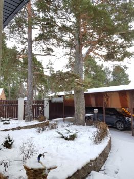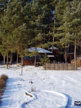 Участок облагорожен, растут сосны, плодовые деревья, по периметру участка для удобства выведена вода.