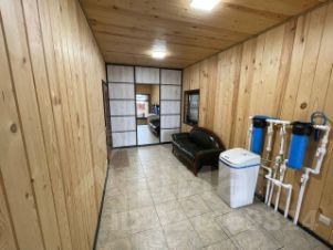 Фундамент и цокольный этаж 188м.кв.- из фундаментных блоков 60*60*230, пол цокольного этажа залит армированным бетоном толщиной 30 см., перекрыт плитами 1*6 м. Внутренний периметр цокольного этажа весь выложен красным кирпичом и отделан блохаусом класс А. Весь цокольный этаж уложен плиткой. Там есть сауна из ценных сибирских и африканских пород-выложена соляная стена, купель. Зона купели вся отделана плиткой. Кладовка, комната отдыха ,санузел, спортзал.