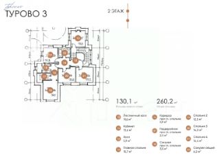 Второй этаж: мастер-спальня с гардеробной и с/у, 3 спальни, с/у, кабинет.