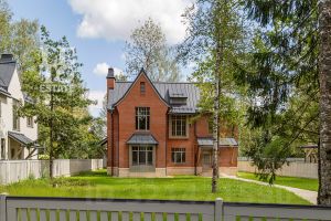 Дом сочетает элегантность традиционного стиля и высокое качество строительных материалов. Стены возведены из кирпича, цоколь, терраса, крыльцо, дорожки выполнены из травертина, крыша- фальцевая кровля, все двери и стеклопакеты в доме- из натурального дерева.