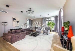 В отделке использованы материалы от ведущих европейских производителей, комбинированная отделка стен — покраска, вставки из высококачественных обоев, полы: итальянская плитка и инженерная доска. Дубовая лестница. Двери - натуральный шпон. Потолки - гипсокартон. Вся сантехника от известных европейских брендов: Jacob Delafon, Laufen, Hansgrohe, Geberit, DornBracht, Vitra.