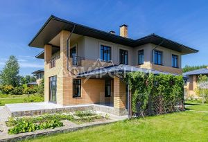 Ваш будущий дом — воплощение европейского качества и гармонии: коттедж построен из крупномерного финского кирпича с отделкой панелями из натурального тонированного дерева, монолитные перекрытия и финская металлическая кровля гарантируют надежность и долговечность.