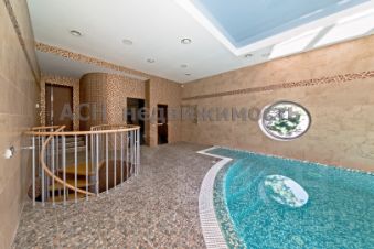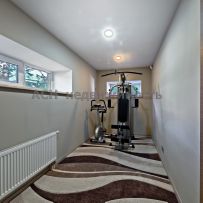Цокольный этаж: проектом дома предусмотрена установка окон на этаже, что обеспечивает циркуляцию воздуха, из-за чего делается свободное проветривание. На этаже зона- биллиардная с комнатой отдыха, тренажерный зал, постирочная -гладильная с душевой, зимняя гардеробная, оружейная, кладовая комнаты и дополнительно подсобные помещения. В котельной установлена система грубой и тонкой очистки воды, медная разводка труб, немецкий газовый котёл Viessmann 120 кВт.