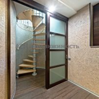 СПА зона: бассейн переливной с противотоком, с системой обеззараживания, дезинфекции воды ионами серебра и меди, приточно-вытяжная вентиляция, сауна, душевая комната. Винтовая лестница ведет на цокольный этаж в зону игровой-биллиардной.