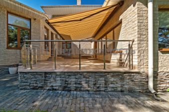 1-й уровень: просторная, светлая, входная группа, гардеробная комната с окнами, гостевой с/у, гостиная с камином, кухня-столовая с встроенной мебелью и техникой Bosh, с объёмным подоконником, который может служить рабочей зоной, теплая зона барбекю с выходом на открытую террасу. Пол- итальянская плитка светлый мрамор, водяная система подогрева пола. На террасе установлен автоматический навес Markiza-Veranda (текстильная архитектура- тканевые паруса).
