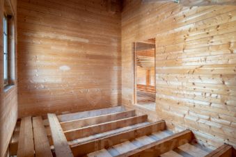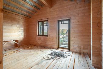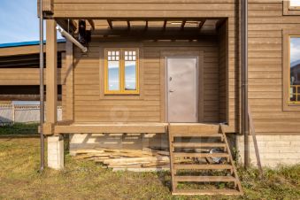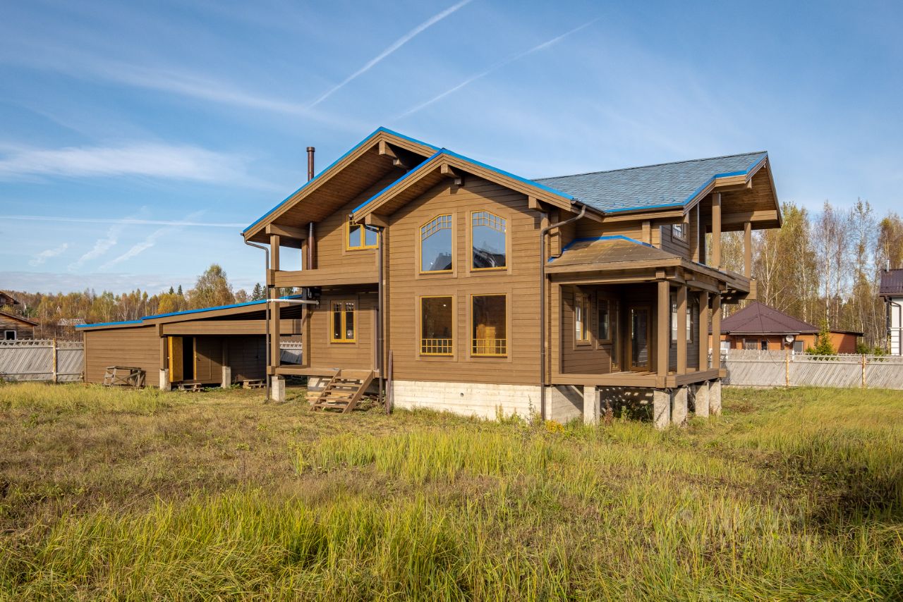 Площадь дома 195,6 кв.м. + терраса, балкон и подвал общий метраж 220 метров. Материал: клеёный брус (200мм), крыша мягкая черепица цвета Джинса.