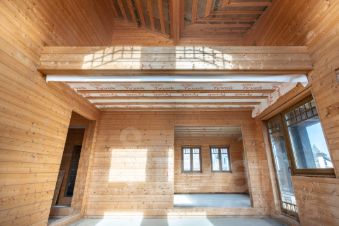 Дом двухэтажный, открытая терраса с прозрачной крышей из карбонового стекла.