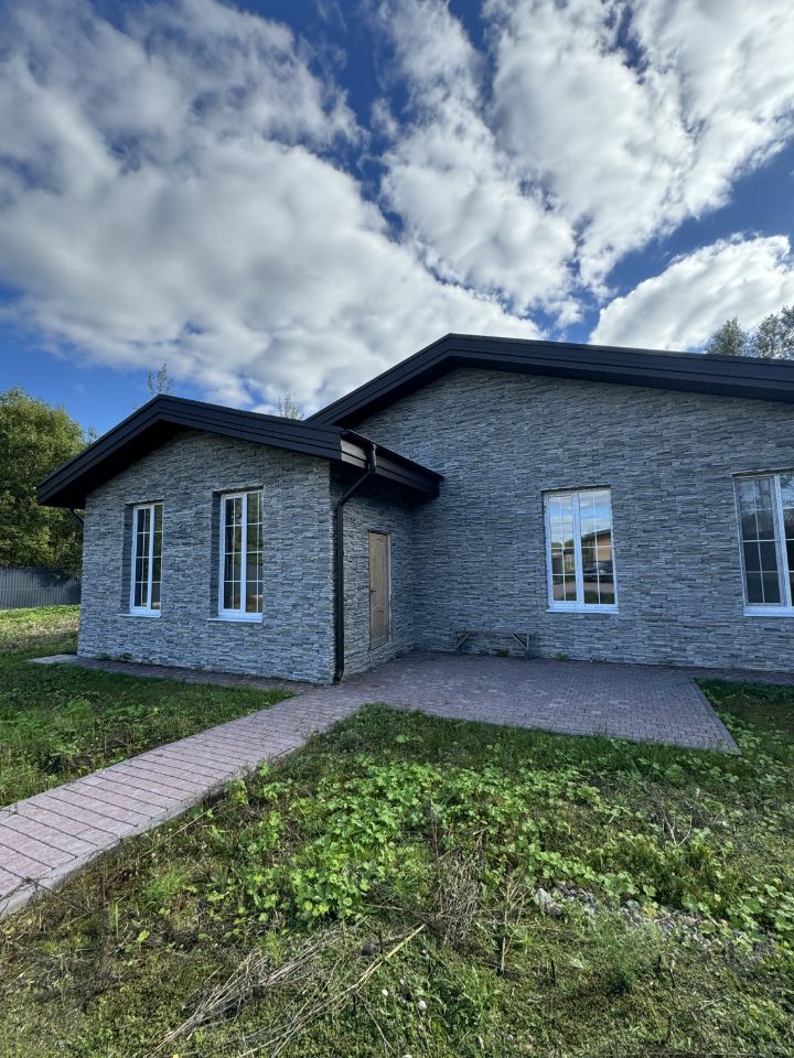 Планировка дома: просторная кухня-гостиная со скрытой подсобной зоной 68.7 кв.м., хозяйская спальная комната- 22 кв.м. с санузлом , две изолированные комнаты по 14.2 кв.м., совмещенный санузел 7.8 кв.м., холл 20 кв.м., котельная- 7.5 кв.м. При желании модно сделать второй этаж.