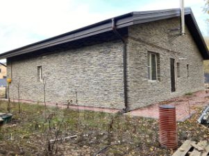 Дом- газоблок (Д500), Фундамент- сваи-40-бетонные(200х200 мм)набивные-2.7 м, плита армированная (300 мм) гидроизоляция, пеноплекс-50 мм, теплый водяной пол.