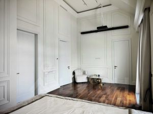 На первом этаже расположена дополнительная спальня для гостей или няни.
