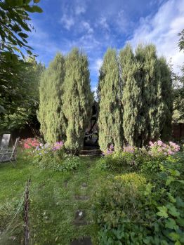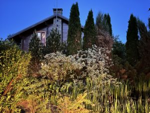 Крытая большая парковка на 2+2 автомобиля, автоматические ворота, садовый сарай для уличного инвентаря. На участке парк-сад, пруд с лилиями, крупные многолетние хвойники, плодовые и декоративные растения. Беседка, освещение по всему периметру участка. Ничего лишнего.