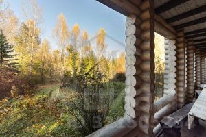 Часть участка, спереди и с торцевой части дома - лесные деревья. Часть участка за домом - поляна.
