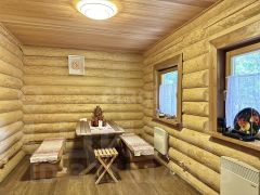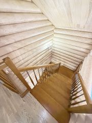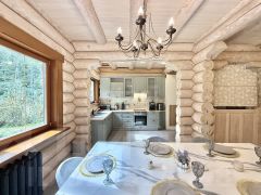 Продается теплый бревенчатый дом по авторскому проекту из архангельской сосны для круглогодичного проживания.