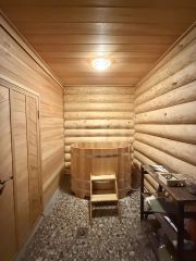 - предбанник 9,3кв.м (душевая кабина, чан двухместный деревянный для холодной воды, теплый электрический пол)