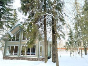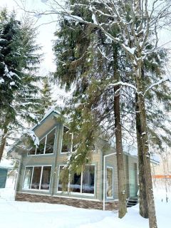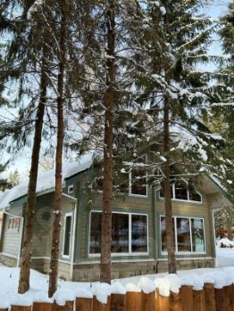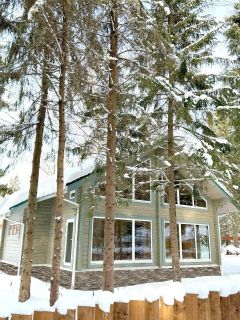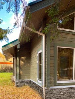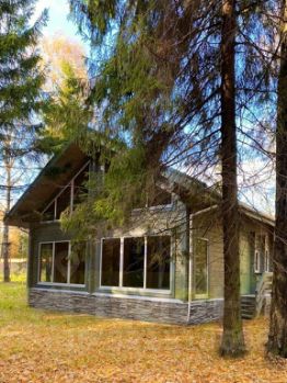 Новый коттедж из клееного бруса в стиле Шале, расположенный на участке 7 соток, с возможностью расширения. Общая площадь 168 кв.м., панорамное остекление, второй свет, крыша-финская мягкая кровля Katepal, окна BrusBox, толщина стеклопакета-70 мм, 3-х камерный, фурнитура Rotо, монолитный бетонный фундамент. Планировка 1 этаж: крыльцо, прихожая, гардеробная, топочная, санузел, холл, кухня-гостиная с панорамными окнами и выходом на веранду, большая спальня (реально можно поделить на две в каждой по 1 окну). Планировка 2 этаж: лестница, холл, санузел, 3 спальни. Время в пути от Москвы до поселка 35-40 минут. В поселке проведен оптоволоконный интернет.