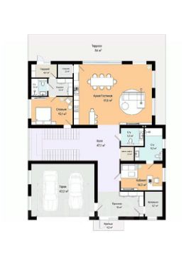 Просторная кухня-гостиная с панорамными окнами и выходом на террасу. Кабинет с санузлом. Блок для персонала с отдельным входом, спальней, санузлом, кладовой, гардеробом, постирочной. Гараж на два автомобиля (с возможностью увеличения до четырех). Котельная. Санузел.