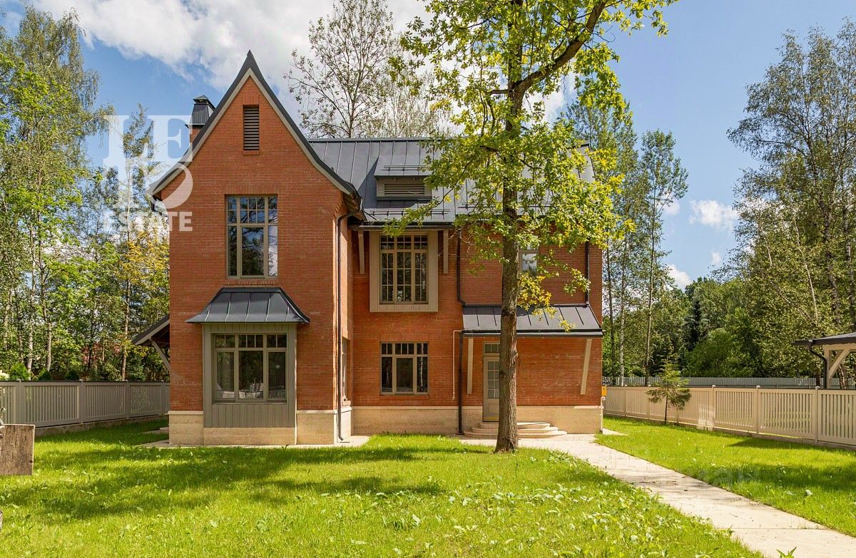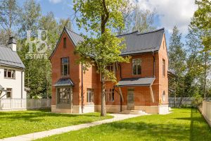 Дом сочетает элегантность традиционного стиля и высокое качество строительных материалов. Стены возведены из кирпича, цоколь, терраса, крыльцо, дорожки выполнены из травертина, крыша- фальцевая кровля, все двери и стеклопакеты в доме- из натурального дерева.