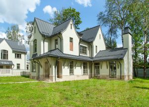Дом сочетает элегантность традиционного стиля и высокое качество строительных материалов. Стены возведены из кирпича, цоколь, крыльцо, дорожки выполнены из травертина, крыша- фальцевая кровля, все двери и стеклопакеты в доме- из натурального дерева.