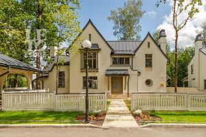 Дом сочетает элегантность традиционного стиля и высокое качество строительных материалов. Стены возведены из кирпича, цоколь, терраса, крыльцо, дорожки выполнены из травертина, крыша- фальцевая кровля, все двери и стеклопакеты в доме- из натурального дерева.
