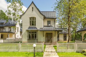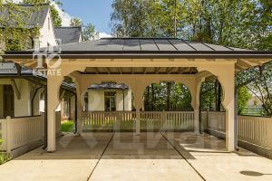 Дом сочетает элегантность традиционного стиля и высокое качество строительных материалов. Стены возведены из кирпича, цоколь, терраса, крыльцо, дорожки выполнены из травертина, крыша- фальцевая кровля, все двери и стеклопакеты в доме- из натурального дерева.