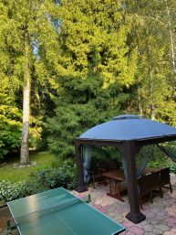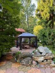 - на территории есть мангальная зона, пруд с водопадом, летняя беседка, зона отдыха в виде гамака и качели;