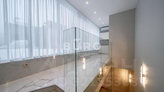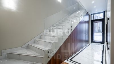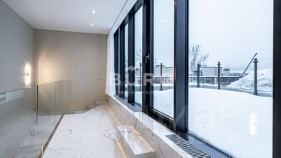 Высокие потолки (высотой 3,5 м.) и панорамные окна "от пола до потолка" делают дом невероятно светлым и уютным. Монолитные лестницы гармонично дополняют пространство.