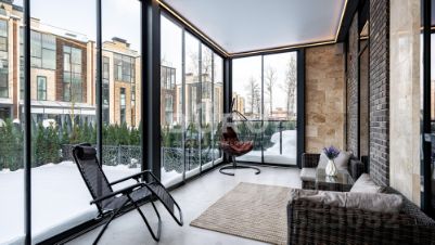 Современный таунхаус с панорамным остеклением, делающим дом невероятно светлым и уютным, представлен под ключ.