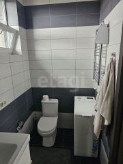 Санузел с душевой зоной, полноценной стиральной машиной и теплыми полами.