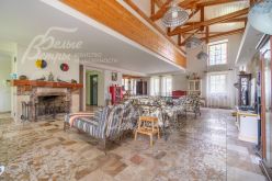 Мебель, оборудование: в доме итальянская мебель. На кухне: гарнитур с фасадами из массива дерева (вишня), столешница Domiziani из вулканического камня с ручной росписью, выполненной на семейной мануфактуре Domiziani, встроенная техника Bosch (духовой шкаф, варочная панель, посудомоечная машина, холодильник Toshiba, микроволновая печь Bork), барная стойка со стульями Domiziani. В столовой: эксклюзивный обеденный стол. В спальнях: дорогостоящие гарнитуры высокого качества с комодами, туалетными столиками и тумбами. В гостиной: диванная группа, серванты, журнальные столики и другие элементы интерьера от итальянских дизайнеров. В гостиной и в одной из спален телевизоры Panasonic (в гостиной с акустической системой). В постирочной: стиральная машина Bosch. Во всех комнатах есть карнизы, благородные статусные шторы, люстры, настенные бра, встроенные светильники. В санузлах сантехника Villeroy&Boch (в старинном стиле), в том числе джакузи с гидромассажем.