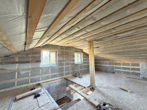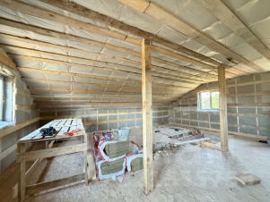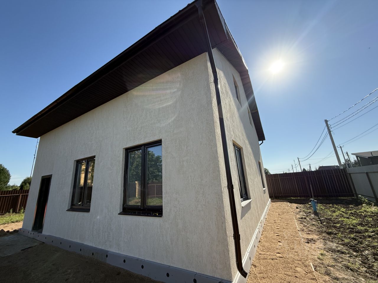 дом построен из пеноблоков (300), минеральная вата утепление, монолитная плита (жесткая -25см), скважина 50 метров заведена, септик, электричество 15кВ заведено в дом, дерево полностью покрыто антисептиком, окна Rehau(двойной стеклопакет) .