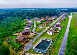 - Коттеджный поселок построен в едином архитектурном стиле, все дома выполнены из клееного бруса, посёлок состоит из 138 домов, расположенных на территории 21 га