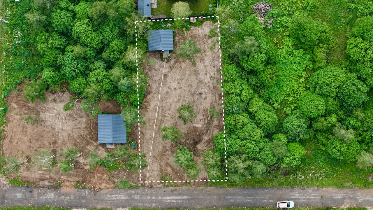 - Участок 7,67 соток расчищен и выровнен, оставлены взрослые березы